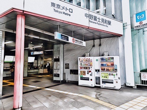 ⇒東京メトロ丸ノ内線 ⇒Mb04中野富士見町 ⇒降車 ⇒方南町方面行き車両から