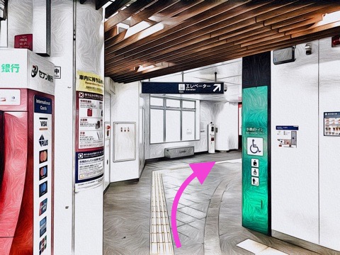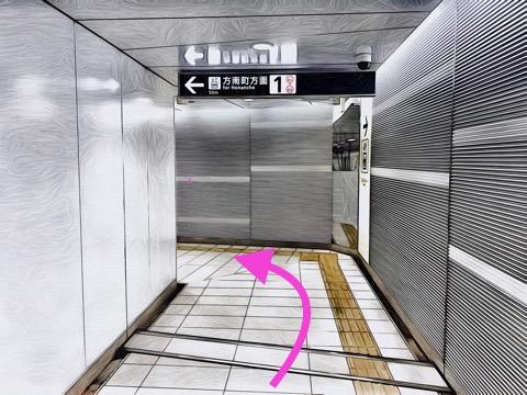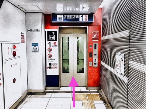 方南町方面行きホーム(3両編成:2号車2番扉/先頭から2両目、6両編成:5号車2番扉/先頭から5両目)