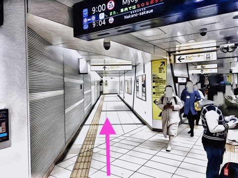 3両編成:3号車2番扉(先頭から1両目)、6両編成:6号車2番扉(先頭から1両目)付近の通路へ
