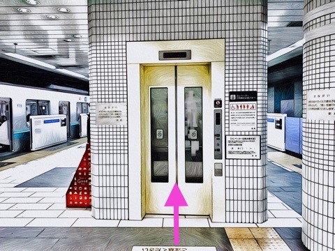 4号車4番扉(先頭から4両目)付近のエレベーターで改札階へ