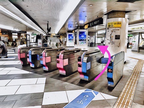 前方の改札へ