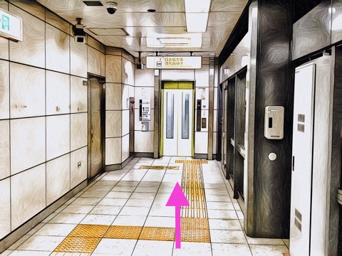1号車1番扉(先頭から1両目)付近のエレベーターへ