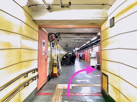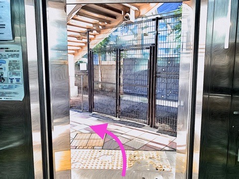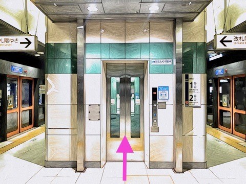 4号車1番扉(先頭から4両目)付近のエレベーターで改札階へ