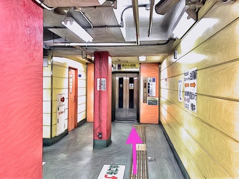 エレベーターを降り左へ