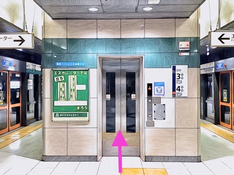 4号車2番扉(先頭から5両目)付近のエレベーターで改札階へ