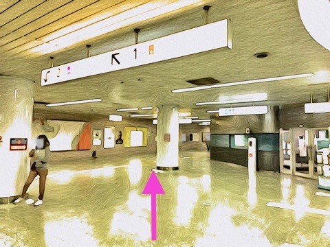 6号車1番扉(先頭から6両目)付近のエスカレーターへ