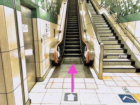 前方のエスカレーターへ