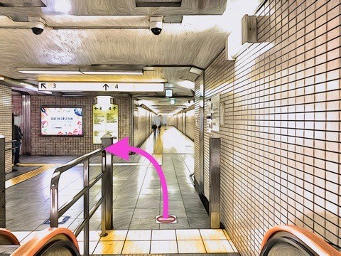 6号車2番扉(先頭から3両目)付近のエスカレーターへ