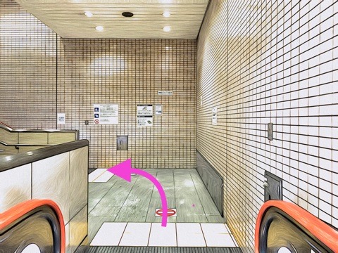 前方のエスカレーターへ
