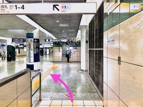 1番線が都営三田線西高島平方面行きホーム(4号車1番扉/先頭から4両目)