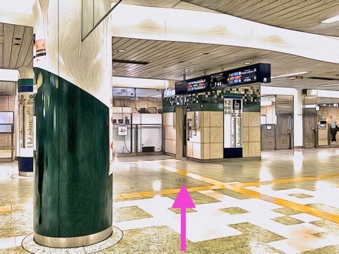 6号車2番扉(先頭から3両目)付近のエスカレーターへ