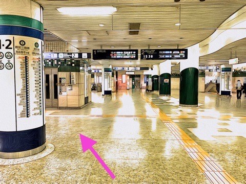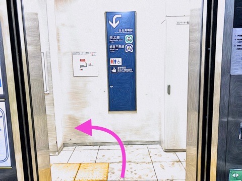 2番線が赤羽岩淵方面行きホーム(4号車1番扉/先頭から4両目)
