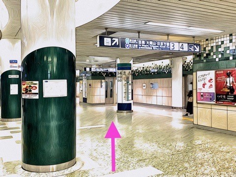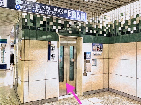 3番線が目黒方面行きホーム(4号車2番扉/先頭から5両目)