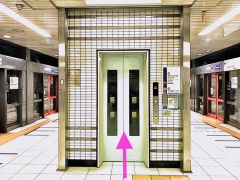 5号車1番扉(先頭から5両目)付近のエレベーターで改札階へ