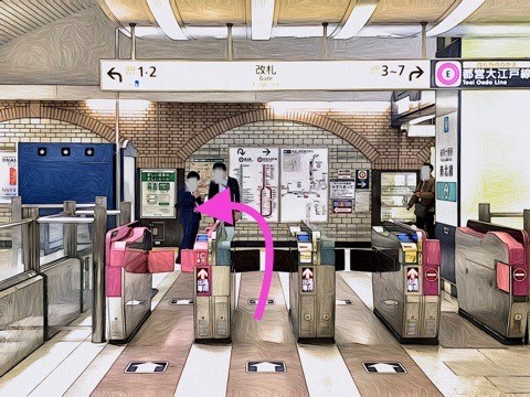 3号車3番扉(先頭から3両目)付近のエスカレーターへ