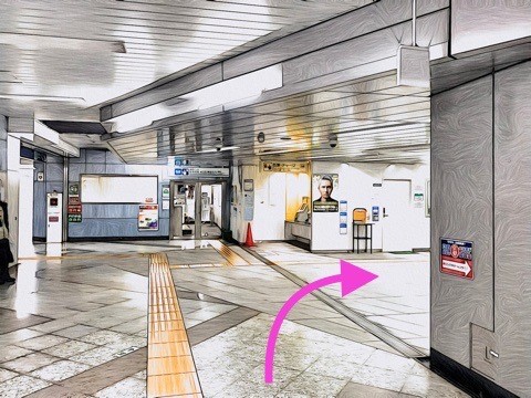 右にある改札へ