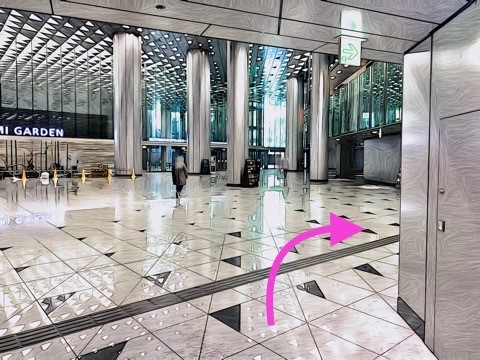 左前方のエレベーターへ