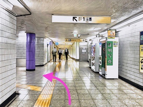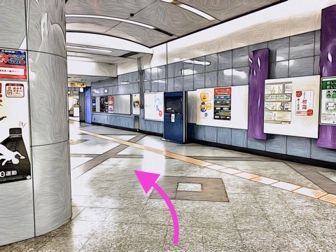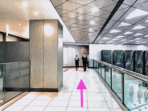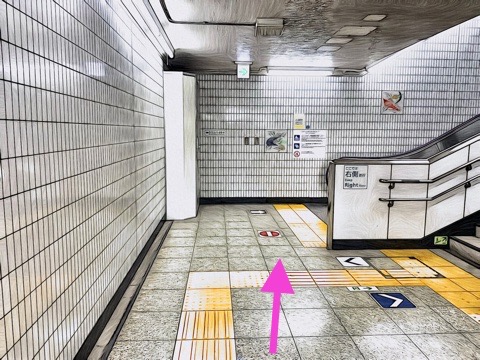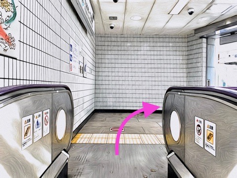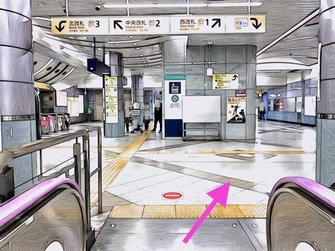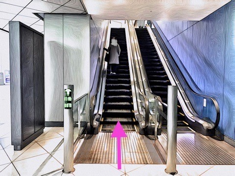 3号車1番扉(先頭から3両目)付近のエスカレーターで改札階へ