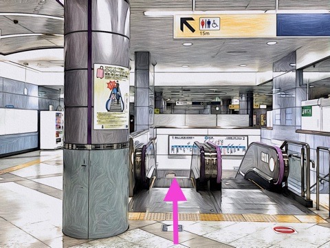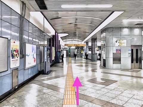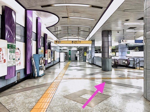 1番線が赤羽岩淵方面行きホーム(3号車1番扉/先頭から3両目)