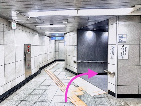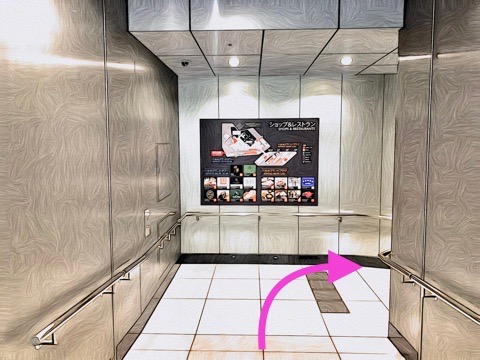 出入口1のエレベーターへ