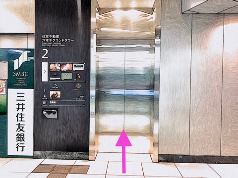 左前方のエレベーターへ