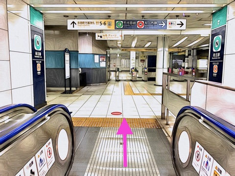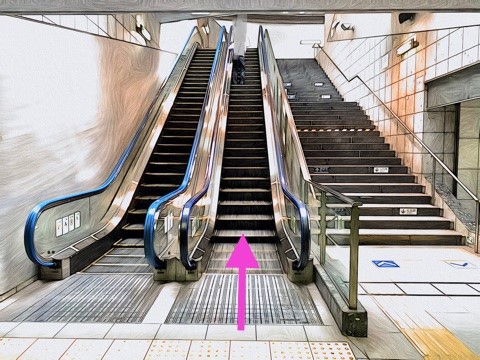 1号車1番扉(先頭から1両目)付近からエスカレーターへ