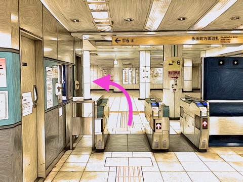 1号車1番扉(先頭から1両目)付近からエスカレーターへ