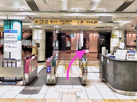 2号車2番扉(先頭から2両目)付近のエスカレーターへ
