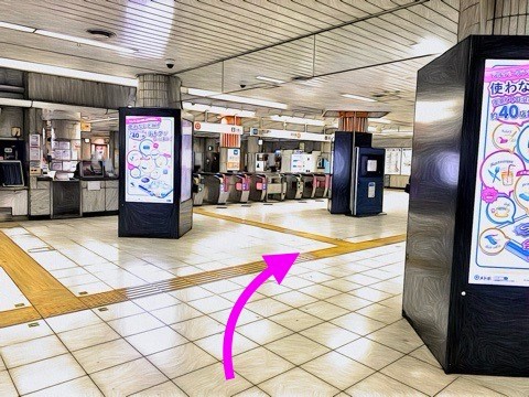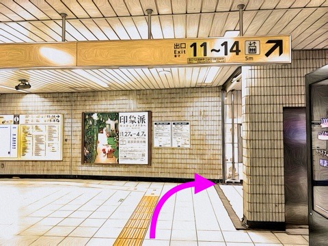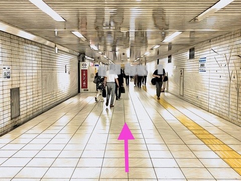 2号車3番扉(先頭から7両目)付近のエスカレーターへ