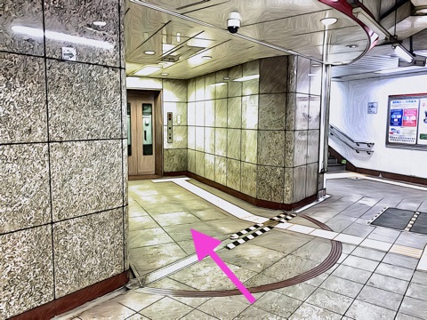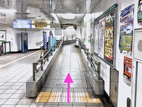 1号車1番扉(先頭から8両目)付近からエスカレーターへ