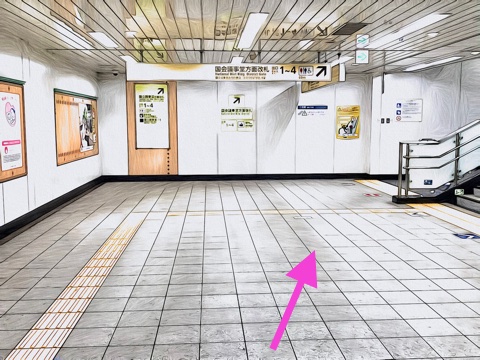 エスカレーターを降り前方へ