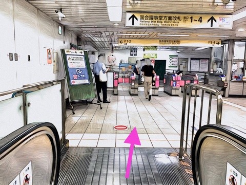 エスカレーターを降り前方の改札へ