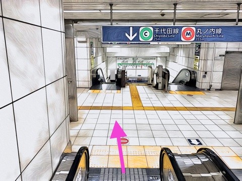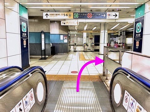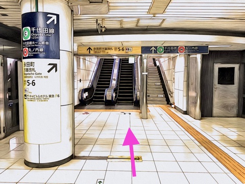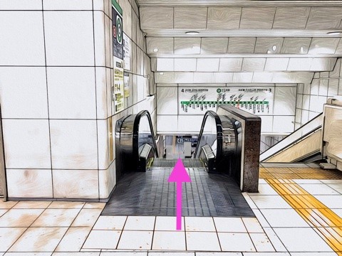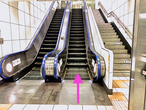 1号車1番扉(先頭から1両目)付近からエスカレーターへ