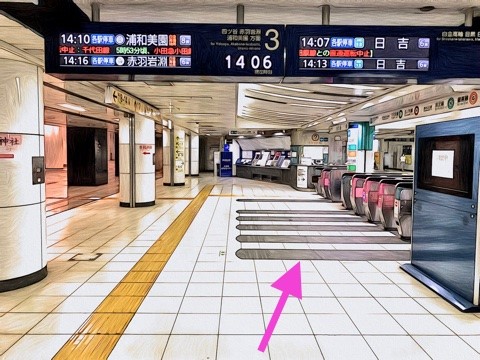 4番線が目黒方面行きホーム(2号車1番扉/先頭から7両目)