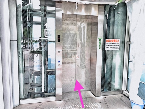 左にあるエレベーターへ
