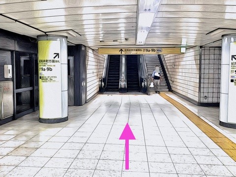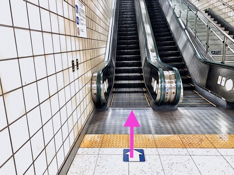 前方のエスカレーターへ