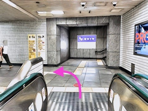 1号車1番扉(6両編成:先頭から1両目、8両編成:先頭から1両目)付近からエスカレーターへ