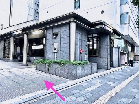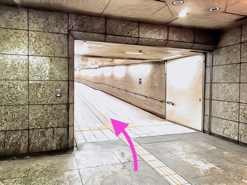 出入口5のエレベーターへ
