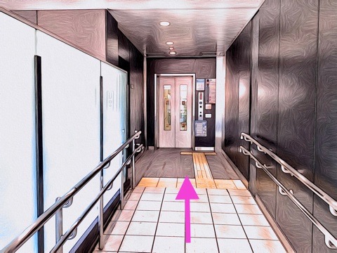 前方のエレベーターへ