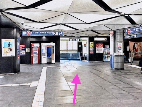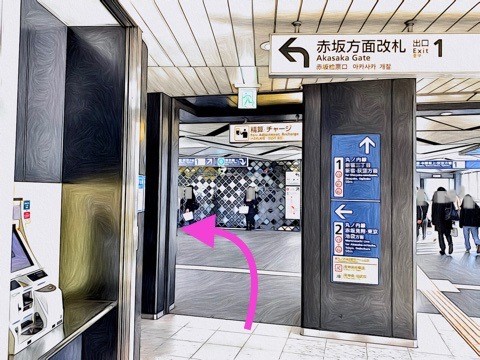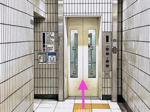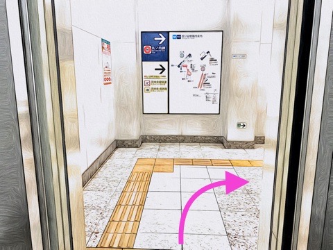 6号車4番扉(先頭から1両目)付近のエレベーターで上の階へ
