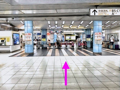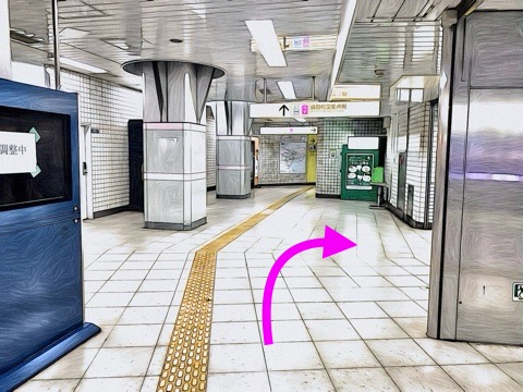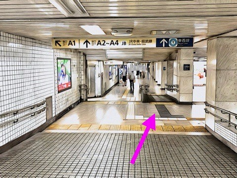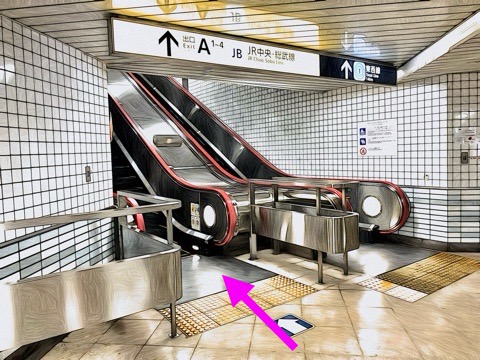 1号車1番扉(先頭から1両目)付近のエスカレーターへ