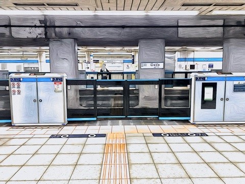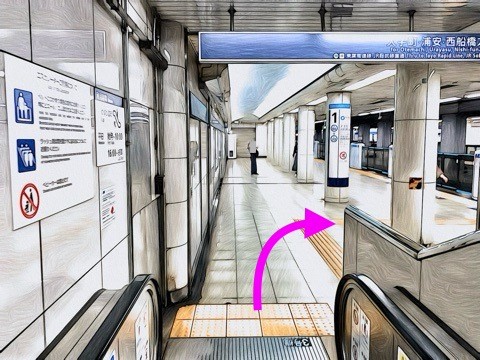 1号車1番扉(先頭から1両目)付近のエスカレーターへ