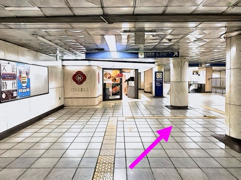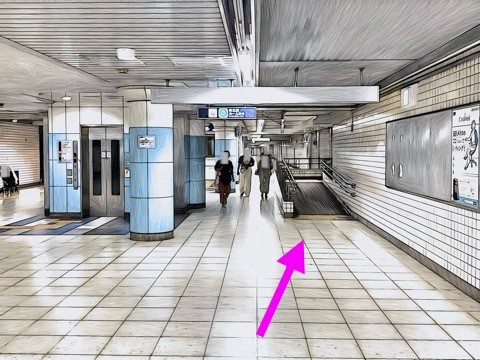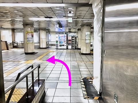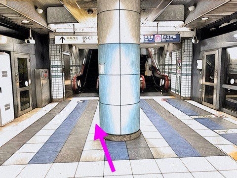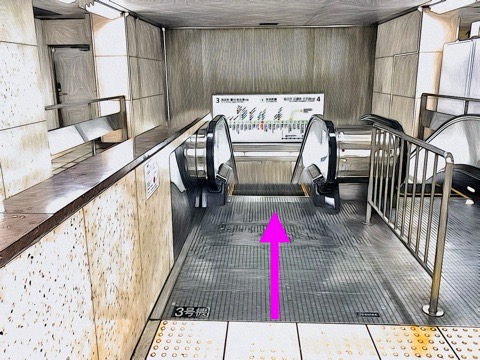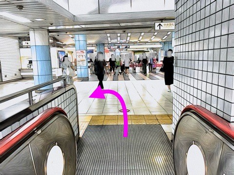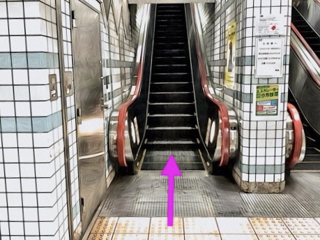 1号車1番扉(先頭から1両目)付近のエスカレーターへ