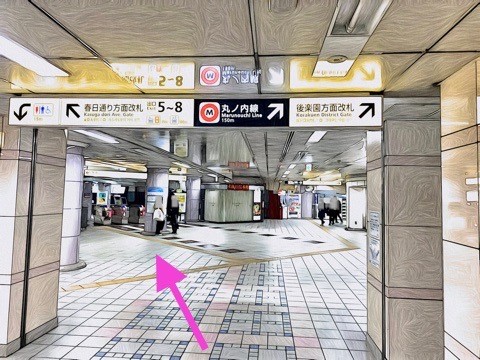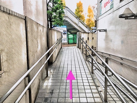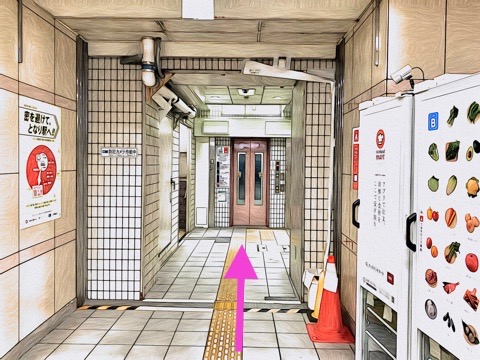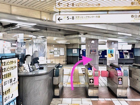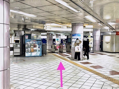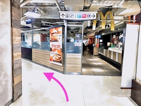 2号車4番扉(先頭から2両目)付近のエスカレーターで上の階へ