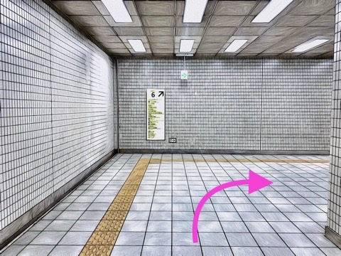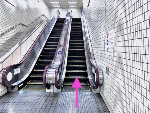 3号車1番扉(先頭から6両目)付近のエスカレーターで上の階へ