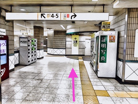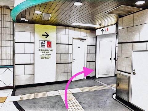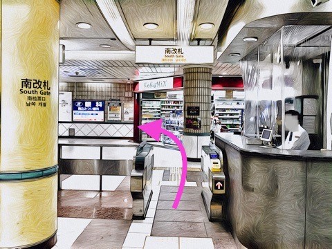 3号車4番扉(先頭から3両目)付近のエスカレーターで改札階へ