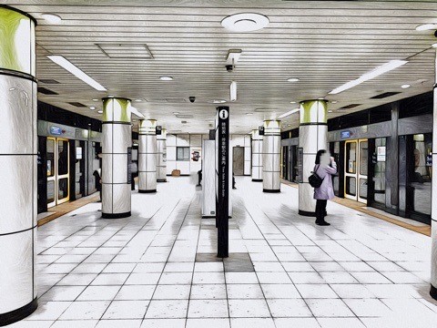 左の1番線が赤羽岩淵方面行きホーム(5号車4番扉/先頭から5両目)