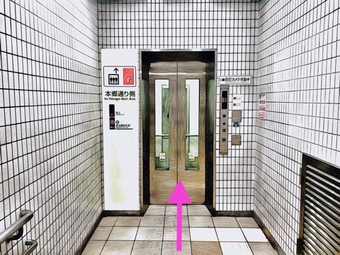 エレベーターを降り前方の通路へ