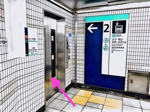 エレベーター出入口のエレベーターで改札階へ