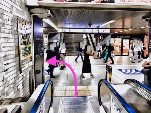 車いす対応エスカレーターを降り左へ